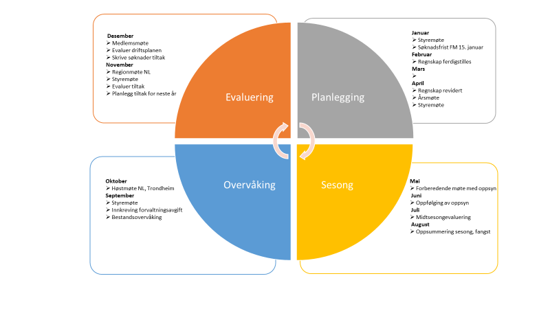 I tillegg til de lovpålagte driftsplanpunktene, vil du her også finne oversikt over forvaltningslagets årshjul og møter/arrangementer