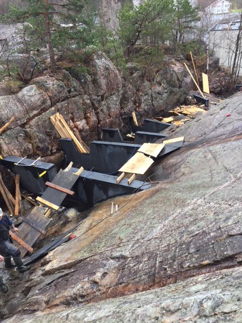 Reperasjonen av laksetrappa i Boenfossen er i full gang og trappa vil være funksjonell igjen om kort tid.